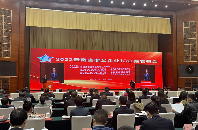 11月15日,云南省工商业联合会(总商会)在昆明海埂会堂举行了2022云南省非公企业100强发布会。会上公布了“2022云南省非公企业100强”及今年首次设立的“创新能力10强”等榜单。