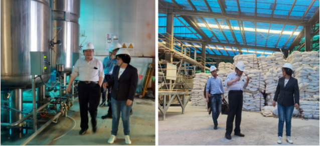 工程中心董事长尚海丽、市场总监盘文政等人陪同先后参观云之叶生产车间、发酵车间、科研楼、肥料试验验证大棚。