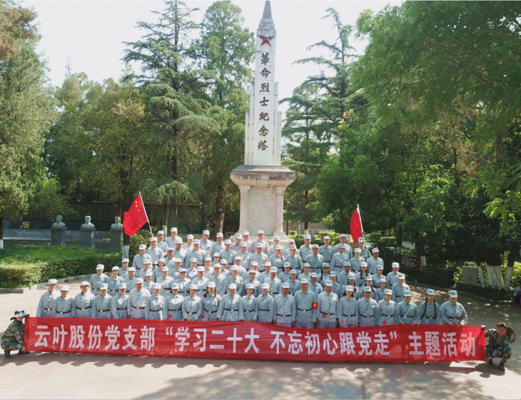 为加强党建带工建,推动党工建设相互促进、共同发展,激励公司全体党员继承和发扬党的优良传统和工作作风,激发职工奋发向上,积极进取的拼搏精神,圆满完成各项工作任务,进一步增强公司的凝聚力、战斗力、号召力和向心力,2023年4月21-22日,云叶股份支部委员会和工会联合会共同组织公司全体党员、主管级以上人员和女职工参加了工会联合会“唤醒情感记忆 点燃事业激情”,及党支部“学习二十大 不忘初心跟党走”主题活动。
