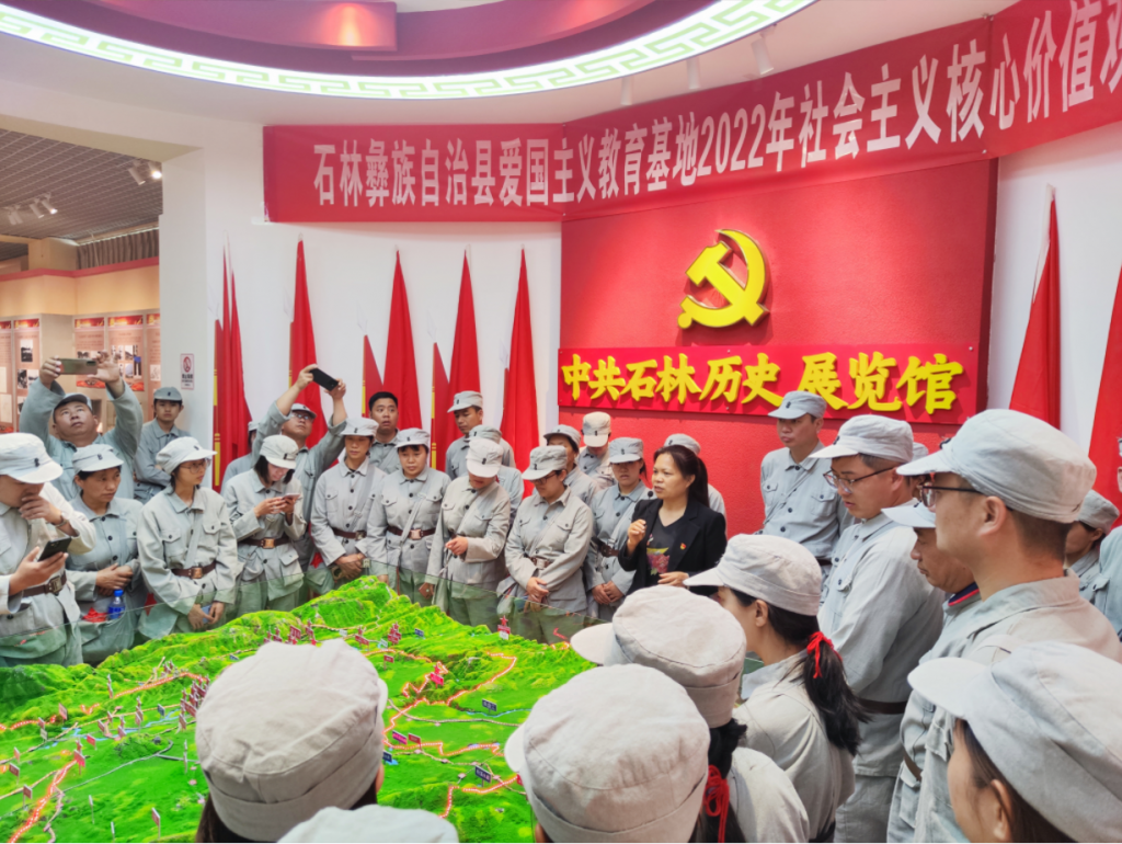 活动第二站:石林县党校-参观石林历史展览馆。了解党在石林这片热土之上团结带领各族人民群众投身革命、建设国家和改革开放的光辉历史,进一步坚定不移“听党话、跟党走”的信念和决心。